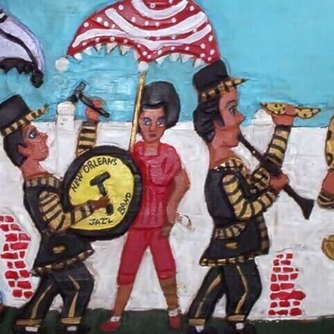 “As a native New Orleanian, I became interested in art while working as a shoeshine boy in the French Quarter where Jackson Square street artists shared with me their paint, brushes, and other supplies. I have had no formal training during my forty years as a full-time professional artist, instead allowing my materials and New Orleans’s African American culture to guide my work. In 2000 I established the Algiers Folk Art Zone & Blues Museum, one of the South’s few “living” folk art environments, where I create new pieces and give tours to educate the public about the region's blues and jazz musicians, as well as other Black self-taught visual artists. In addition to numerous local private collections, my work may be found in the Smithsonian’s National Museum of African American History and Culture in Washington, DC.”